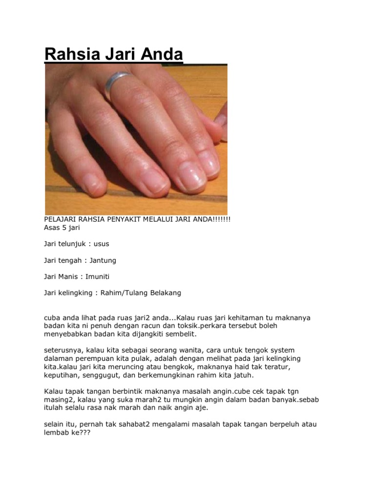 Terapi Sakit Belakang Lihat Tapak Tangan Anda 1 Kuku Berombak Menunjukkan Kandungan Kolestrol Bertambah Dalam Darah 2 Hujung Jari Melekuk Menunjukkan Tanda Stress 3 Tanda Putih Pada Pangkal Jari Tengah
